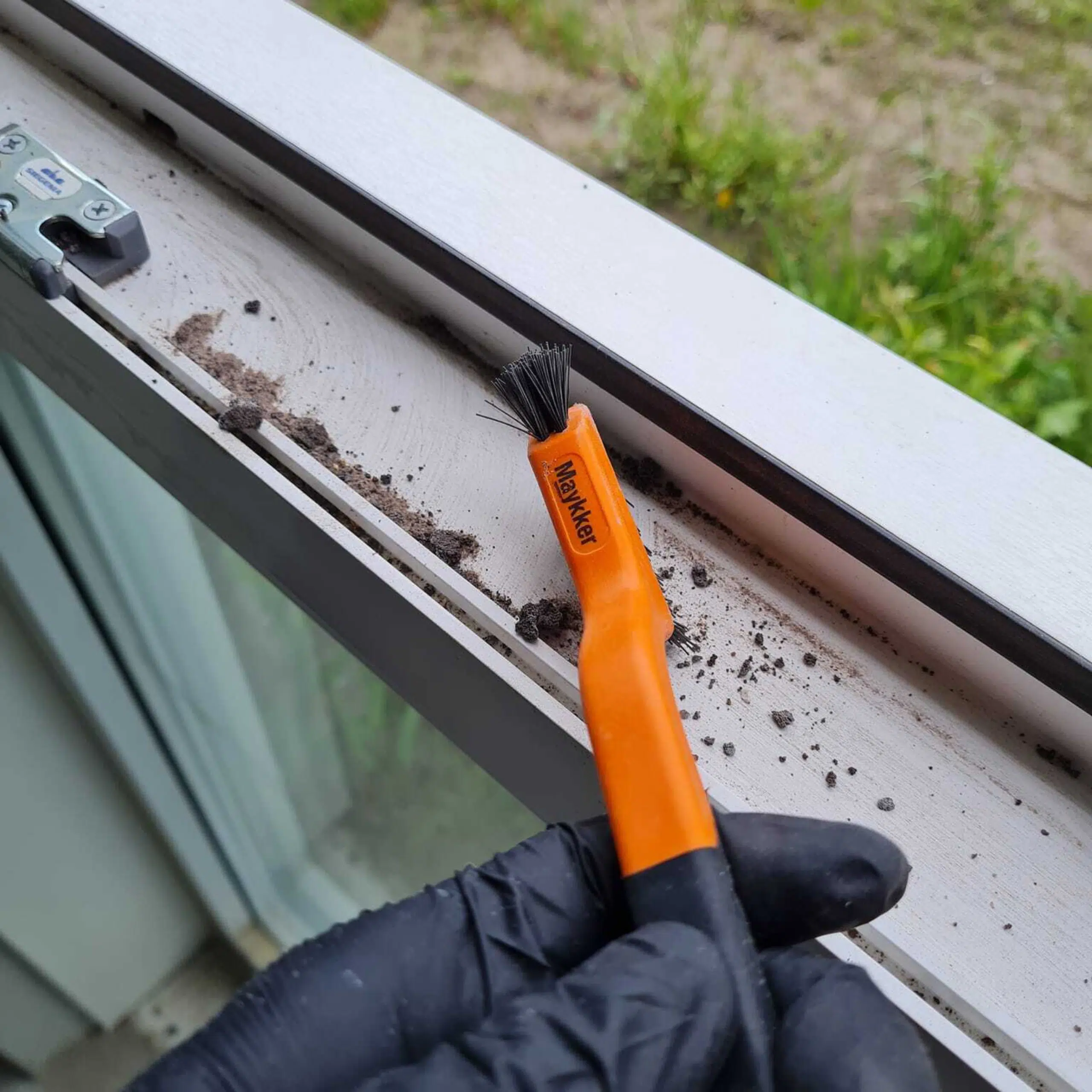 Window tracks and screens that collect grime